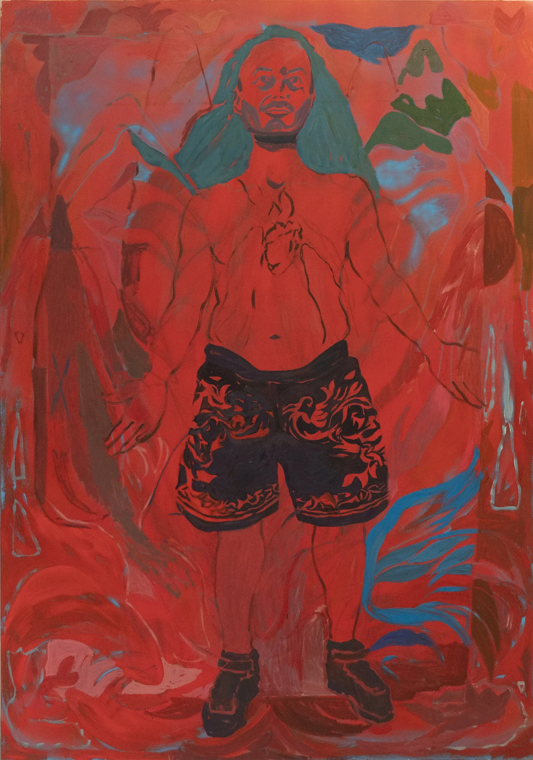 Technical Specifications: Piotr Kolanko Not Anymore Performance, video, object Duration: 20 minutes Not Anymore is part of a series of projects aimed at integrating the self and confronting the traumas of growing up with ADHD, high sensitivity, a sense of otherness, and social misfit. In his work, the artist often explores themes of exclusion, rejection, the loss of safety and comfort, and prolonged exposure to high levels of stress. These actions serve a therapeutic function — helping to restore connection with the body, sensation, and conscious presence. During the performance, the artist undertakes a symbolic act — applying onto his body words, labels, and judgments that have defined his identity over the years. In the final act, through immersion in dense blackness, he connects with his traumatized self, expressing understanding and compassion. At the same time, he draws a boundary between what has shaped him and what he now consciously chooses as a manifestation of his psyche and soma. The performance becomes a symbolic process of transformation. As a side effect of the act, an action painting is created — an image that emerges from the washing away of black paint from the body, symbolizing a transition from darkness into